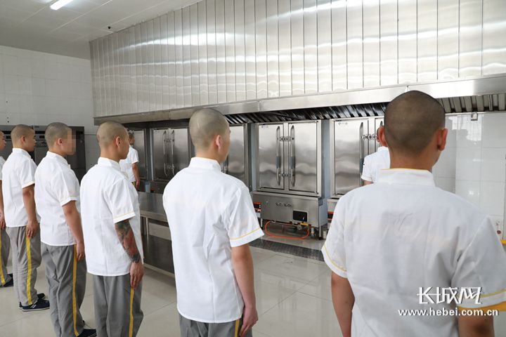 河北省未成年犯管教所开放日活动,这是管区食堂,服刑人员准备做饭。记者 张晨光 摄
