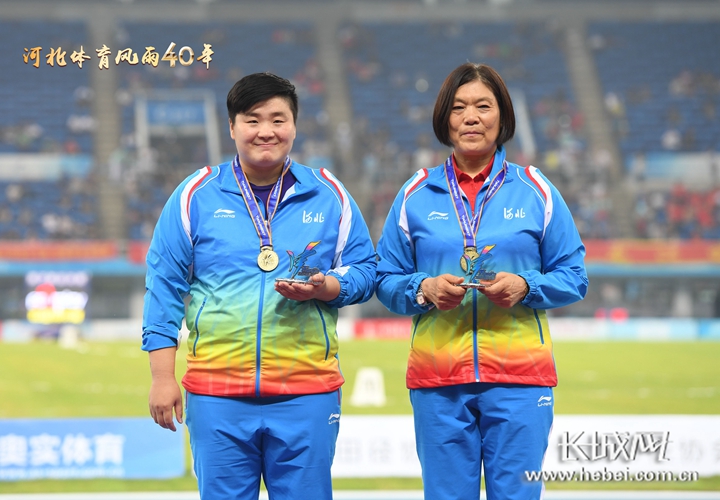 李梅素与爱徒巩立姣在2017年天津全运会上。河北日报记者 耿辉 摄