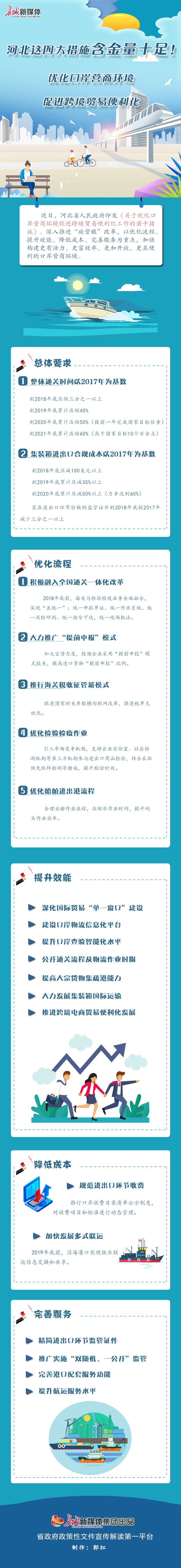 为进一步优化口岸营商环境,加快提升河北省跨境贸易便利化水平,按照《国务院关于印发优化口岸营商环境促进跨境贸易便利化工作方案的通知》(国发〔2018〕37号)要求,河北省印发《关于优化口岸营商环境促进跨境贸易便利化工作的若干措施》。