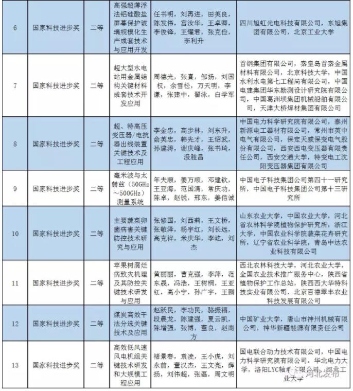 河北省单位(人员)参与完成的获奖项目13项