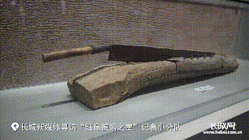 华北革命战争纪念馆位于华北军区烈士陵园北部,走上二楼展厅,就能看见展柜里陈列的一把锈迹斑斑的铡刀。刀片左侧显示“曾於民国二十一年(一九三二)高蠡暴动”字样,右侧显示“铡去八个红军同志头颅之铡刀”字样。