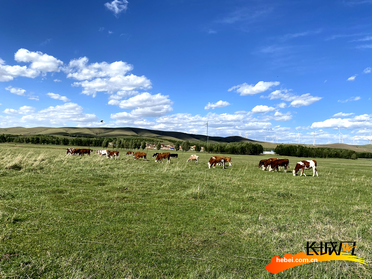 张北草原上成群的奶牛。