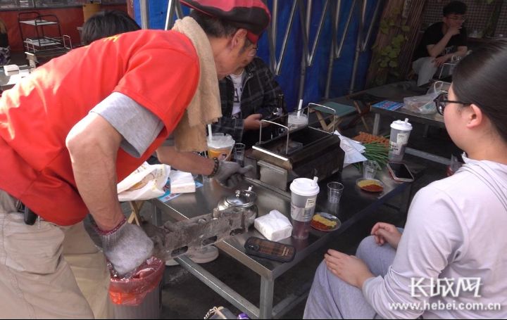 老魏在给小烧烤炉加炭。长城网·冀云客户端记者 郭庆敏 摄