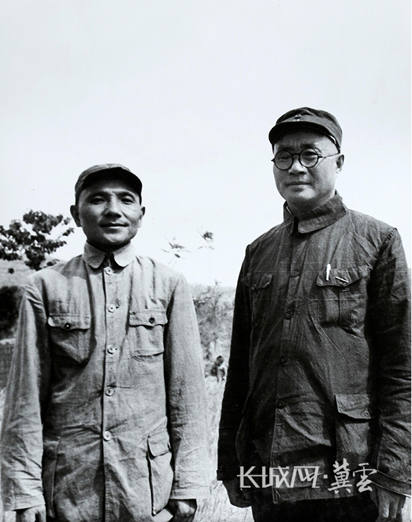 刘伯承师长和邓小平政委在涉县赤岸村合影。八路军一二九师纪念馆供图