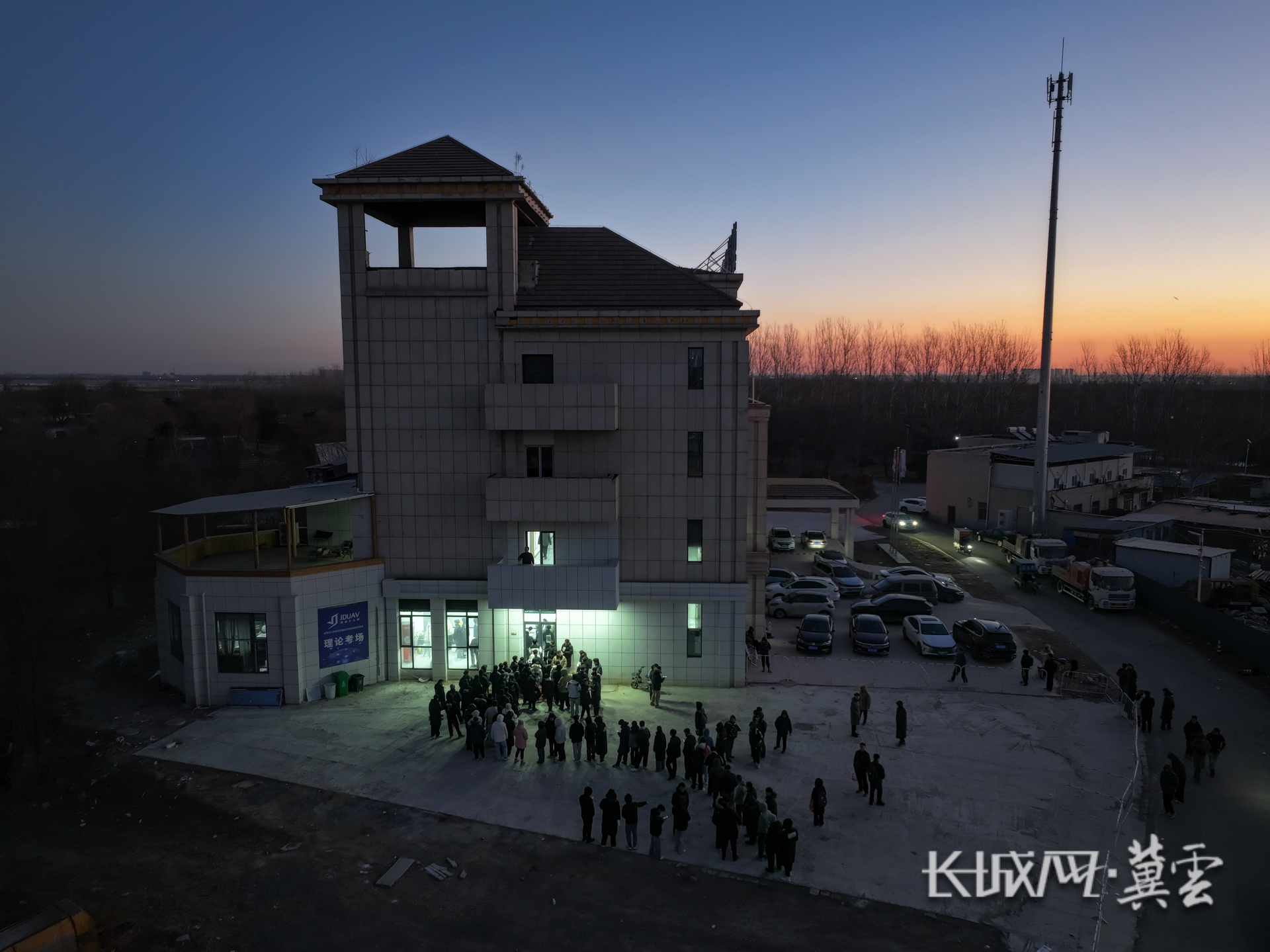 12月25日早晨7时,天蒙蒙亮,位于石家庄市藁城区小丰村的河北骏德无人机培训基地的河北04考点,理论考试入口已经排起长队。